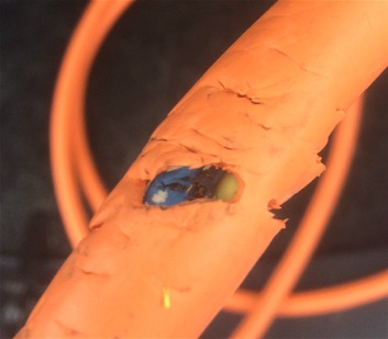 If the car-side cable is damaged (where the damage is through to the inner conductors like the photo above) then, if the Type 2 plug is made by Duosida/Dostar and you want a whole new 5m cable then you should order the ‘Mains Cable Replacement 1’ option from the ‘pEVSE (‘Granny Charger’) Cable Repair Options‘ drop-down menu below. Note: If your cable is longer than 5m, please email me for a quote to replace it.