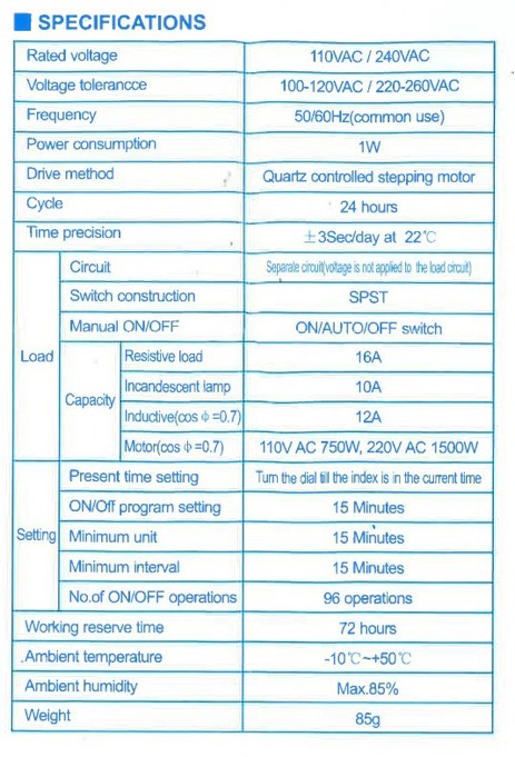 4. Set the timing periods using the sliding pins. Each pin represents 15 minutes and this is the minimum 'on' time. Use a small pointed object such as a ball-point pen to move the sliders. Set to the left side is 'off'. Set to the right side is 'on'.