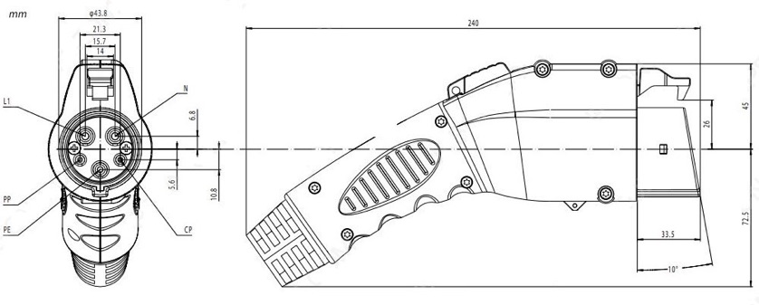 Meets SAE J1772 2009 (Type 1) North American standard, UL Rated.