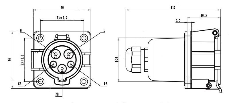 Shell Material: Thermo Plastic (Insulator inflammability UL94 VO)