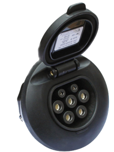 The socket is designed for use in an EVSE (fixed or portable Electric Vehicle Service Equipment or charge point) and does NOT come with the locking solenoid. It has a sprung-flap. It has 3 integral stainless steel M5 x 10mm fixing studs which come with stainless steel plain washers and nyloc nuts.
